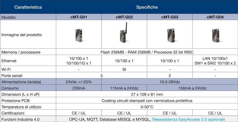 I gateways Weintek Serie cMT-G0x sono la soluzione più semplice ed economica, disponibile sul mercato, per la realizzazione o il revamping di macchine e impianti in ottica Industria 4.0.