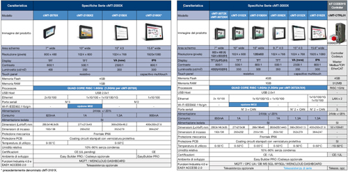 La nuovissima serie cMT-2008X invece è al momento disponibile nei formati 7″, 10″ (wide) e 15″. cMT-2008X è la versione low cost della serie cMT-3000X, con la quale condivide la potentissima CPU quad core ma con un prezzo più contenuto, rinunciando alle funzionalità Industria 4.0 come OPC-UA, integrazione database e funzionalità web.